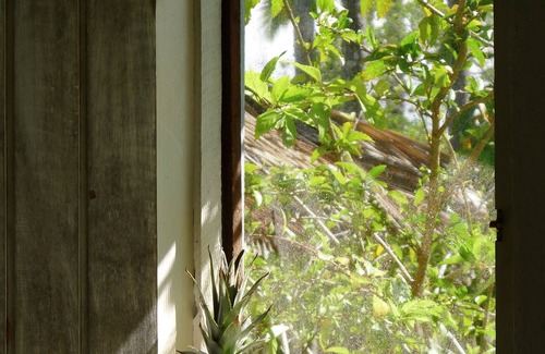 On the beach and by the lake, cozy local architecture built with all modern facilities (split air conditioning, ceiling fans, well equipped kitchen, solar heated showers, separate ladder, quality mattresses, satelite TV and wifi internet, etc). Includes daily cleaning service, use of kayaks, stand-up and surf boards, etc...Large property with garden and coconut trees on the beach. Separate chalet is a double with en suite complete bathroom (additional cost). We have 4 houses in this large beachfront property-see our other listings here.