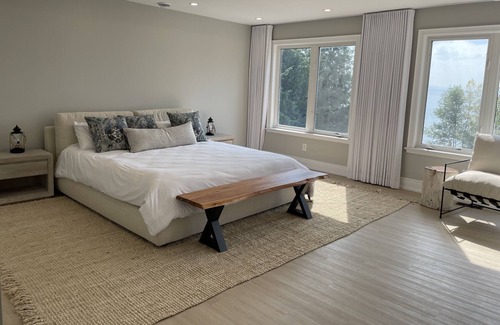 We welcome you to stay in our beautifully newly renovated *all-season* beachfront cottage and enjoy a breathtaking panoramic view of Georgian Bay! Moore Relaxation is right on one of the most stunning freshwater beaches in the world. This rare location hosts a private deck hovering over the white sand in a beach house right on the water.