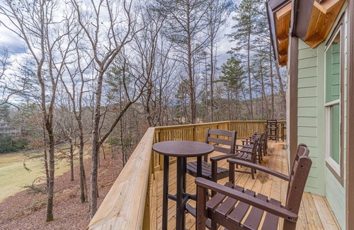Luxury build with you in mind, 3 mile drive to downtown Helen, GA! This luxury cabin has three levels and each level has something new and enjoyable in store for you. You are welcomed on the first level to an open floor plan kitchen, dining, and living room with Smart TV and comfortable furniture for movie nights or watching your favorite sports games. In the cooler months, you can enjoy the gas fireplace in the living room with a simple timer remote. The kitchen is fully stocked for all your cooking needs. An electric stove top with pots and pans, a drip coffee maker, and an assortment of spices stocked in the pantry, cook up a gourmet meal on the stovetop or the gas grill right out on the main floor deck. Families will enjoy two game tables in the open space, a 2 person 1000 game arcade-style table, and Skeech table which will bring out the competitive side of everyone in your party! Walk right out to the main floor deck where you have comfortable outdoor seating with a great view of the Innsbruck Golf Course 10th Hole!