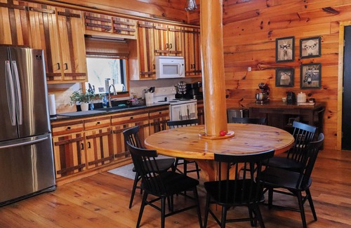 This cabin is stocked for convenience too: you’ll find full laundry facilities, a well-equipped kitchen, and cozy nooks to relax in after a day of exploring. With no nearby neighbors, you’ll have the forest all to yourself—just you, the trees, and the stars.