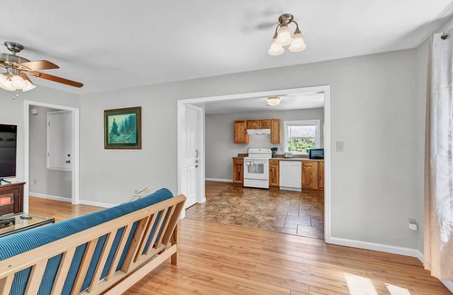 Unwind in Knoxville at this bright, newly remodeled bungalow, located in Bearden, with a large, lush yard. Enjoy 2 cozy bedrooms featuring a king and queen bed, a relaxing porch, dedicated work space, and charming living room with a futon for sleeping kids or extra guests. You'll feel right at home!