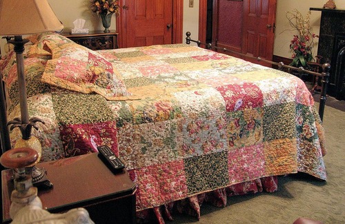 Welcome to the "Russel House". .If you are looking for a grand and majestic Victorian, then this home, known as the 'Russell House', will speak to you. As you enter through the vestibule, you will note the hand-carved staircase and fresco ceilings in the foyer. A formal parlor to your right and a grand sitting room to your left. The impressive wood paneled library offers an intimate seating area with its gas fireplace, built-in bookcases and leaded glass windows. The formal dining room with stained glass windows offers an elegance of times gone by. With both a front and rear staircase, this four bedroom, two and a half bath home gives you a glimpse of the past with its servants quarters off the main sleeping areas. You will enjoy modern conveniences such as internet, cable tv but you can also just forget about modern living and pretend you are living in 1882. The screened in porch on the side of the house or the front porch are great places to enjoy your morning coffee. The home is convenient to shopping, movies and everything you need to make your stay feel like home.