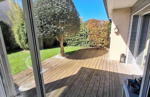 We are pleased to offer you the House of Happiness 130 m2, architect house with a floor, classified Meublé de Tourisme 4 stars dated May 18, 2017 by Latitude Manche, agency attractiveness of the Channel, a recognition and a guarantee of quality for this beautiful luxury home very comfortable, spacious, bright and especially practical, easy to live for up to six people, new construction, located in a very nice area, in a very quiet private road, ideal for a couple, a family or friends.