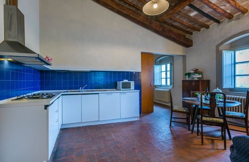 The house is equipped with a central heating system and a shared washing machine (extra charge). Heating is available only from 1st November to 15th April. Access to the property is via an unmade road that is 1 km long, and ample parking is available for guests. The nearest supermarket, restaurant, and railway station (Poggibonsi) are all located 5 km away. Guests can also rent bicycles upon request at the time of booking.