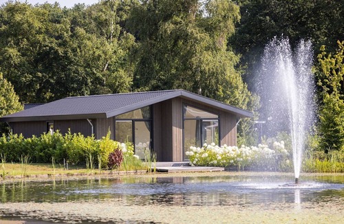 This modern chalet is located by one of the attractive ponds in the holiday park. The chalet has been furnished with great care: the comfort level is high and you will immediately feel at home. Especially the high rooms and large windows enhance the spatial feeling, making the living room with open plan kitchen into a wonderful space. There are 2 bedrooms, all of which are equipped with single box-spring beds, which could or could not be set up as a double bed. The bathroom has a shower. On the pond side, there is a terrace, which is of course equipped with garden furniture.