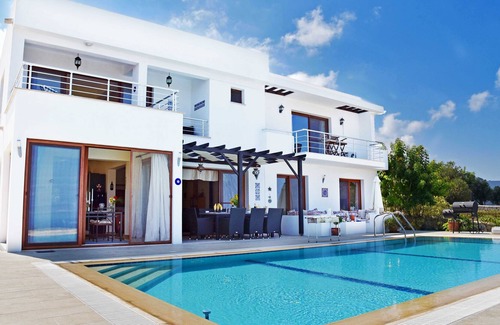 A fully equipped luxury 200 sqm villa with private swimming pool and fantastic views over the Mediterranean Sea. Located close to several sandy beaches and the Korineum Golf & Beach Club. The property can accommodate a maximum of 8 people with its 4 bedrooms, 3 bathrooms, large pool area and beautiful mature garden.