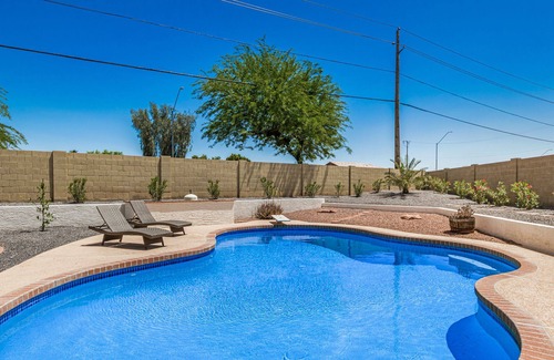 Beautiful Glendale home. Four bedrooms with room for all your family and friends. Designated large work area with printer. Private, large back yard with a Blackstone, eating area with firepit and private heated pool. Conveniently located off the 101 and I17. Just miles away from Spring Training fields, Tiger Woods new PopStroke mini-golf attraction and so much more.