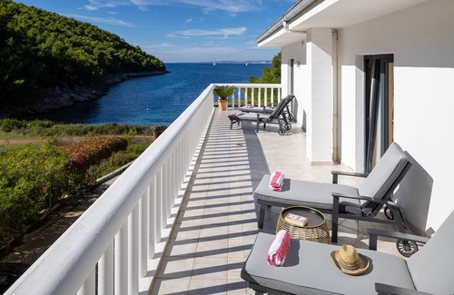 Villa Sea Escape is located on the island of Hvar, only 3 km from the small town of Brusje and 5.5 km from the town of Hvar. Brusje is known as a beautiful place where you can enjoy the clean air and delight in the lavender scents of the nearby fields. This villa is ideal for an escape from the hustle and bustle of everyday life, where you can enjoy peace and quiet just 20 metres from the clear Adriatic Sea. Thanks to the title of the most famous tourist destination, the island of Hvar is visited every year by many local and foreign tourists who are delighted by the diverse offer of entertainment, restaurants, cafes and fun! The villa offers its guests 350 m2 of living space, while the total area of the property is 1200 m2. It offers accommodation for a maximum of 10, ideally 8 people. On the upper floor, guests are comfortably accommodated in 6 air-conditioned bedrooms, 4 of which have double beds, and there are also two bedrooms with bunk beds. The villa also has 2 bathrooms with a bathtub and two en-suite bathrooms with a shower cubicle. On the ground floor there is an equipped kitchen with a bar and two bar stools where you can prepare meals for family and friends. Right next to the kitchen is a dining room with a dining table for 10 people. The living room has two sofas, a coffee table and a TV where you can relax during the day or in the evening, as well as two portable Bluetooth speakers. On the outdoor terrace there is an infinity pool with a size of 40 m2 and a depth of 1.3 metres. The infinity pool is located on the slope above the house and thus offers a spectacular view of the bay and the neighbouring island of Olta. Next to the pool is a sunbathing lawn with 8 sun loungers. The outdoor dining table is directly accessible from the ground floor and offers beautiful sea views. There is also a seating area on the terrace as well as an outdoor charcoal barbecue. Additional features include a separate WC, an outdoor shower and 2 baby cots. There are 4 car parking spaces available. There are also two moorings for boats up to 10 metres. The pleasant Mediterranean climate with many sunny days a year makes the island of Hvar an ideal place for a summer holiday. Beautiful unspoilt beaches and bays with clear blue sea, olive groves and vineyards, picturesque villages and a rich historical and cultural heritage are just part of the island's offer that delights visitors from all over the world. Enchantingly beautiful pebble beaches are right on the doorstep and offer numerous opportunities for an active holiday such as swimming, windsurfing and fishing. In the beautiful town of Hvar you will find a high-quality range of restaurants and bars and an unforgettable evening out. Don't miss the opportunity to enjoy the perfect surroundings that will completely enchant you and will definitely make you want to return to the same place next year. Welcome to Villa Sea Escape!