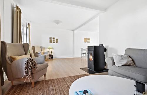 Your holiday home in Kirkehavn on the idyllic island of Omø is just a few metres from the nearest sandy beach, making it the ideal place for relaxing days by the sea. Start your morning with a cosy breakfast in the modern, bright kitchen and discuss your plans for the day in peace and quiet. The spacious living area with its comfortable furnishings and wood-burning stove is ideal for cosy evenings together after a day of exploring.