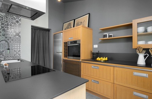 Tastefully decorated and stylish interior consists of 4 bedrooms, 3 bathrooms, a fully equipped kitchen with dining table and spacious bright living room with fireplace. The highlight of Villa Poimon is the beautiful green garden with private pool, children's playground and magnificent views of the town of Pican on the hill. There is also a terrace with an outdoor dining area, charcoal grill and oven. For even more fun at Villa Poimon, there are also darts, table tennis and a wellness fitness room.