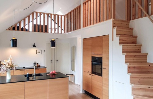 Welcome to the tip of Denmark. Leave everyday life behind and enjoy your holiday home with interesting architectural details on a dune plot. The house was built using high-quality materials and boasts a bright and tasteful interior. The open ceiling construction gives the house a cosy atmosphere and you can enjoy a wonderful view from the spacious sleeping loft.