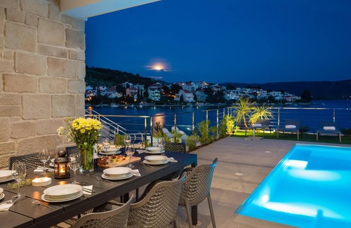 What more could you want? This vacation home promises you the ultimate vacation experience that can't be beaten in terms of comfort, luxury and location. The spacious house welcomes you and your loved ones, family or couples of friends in Zaboric, right by the sea. Inside, in addition to the magnificent sea view, the modern house offers you numerous amenities, such as a fitness room, a sauna with panoramic windows overlooking the water and comfortable rooms and also separate areas so that you can enjoy your privacy in the large house. The terraces on all levels and the pool are a beautiful oasis to make the most of the sun and the seafront location. Watch the magnificent sunsets over a barbecue dinner together and plan your next activities.
