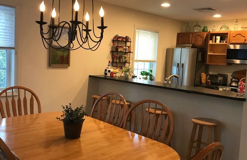The kitchen has just been updated and fully equipped with top-of-the-line stainless steel appliances and granite countertops. It's a true chef's kitchen, perfect for after ski or before Tanglewood. There is an eat-in counter for casual meals and a dining table that can easily accommodate eight people.