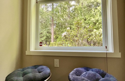 * Community room with smart TV, forest views and a comfortable pull-out couch (this room can be used a private bedroom with it's double-doors for privacy)