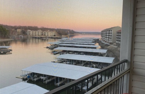 Updated 2 bed 2 full bath waterfront condo. 5 min drive or boat ride to the main Lake of the Ozarks strip nightlife bars and restaurants. Screened in porch. Pool. Swimming Dock. Easy access from highway. Perfect Location