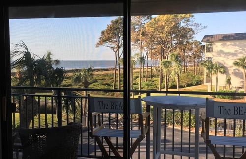 The beach is just outside your door. The ocean view is expansive as you watch the ships go in and out of Savannah harbor. Short walk to Coligny Plaza with shops, restaurants, theater, night clubs, grocery and liquor store.