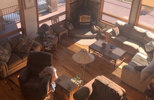 3,000 sq ft house located on one acre. Great room, kitchen, dining, laundry room, 1/2 bath and master bedroom/bath located on main floor. Two large bedrooms, full bathroom, and game room loft on second floor. Beautiful views in all directions. Deer and elk in the yard or field below. Close to fishing, hiking, biking, ATV riding, pickleball, racquetball, tennis and more. Wild animal park less than one mile away. Quiet neighborhood -- house is at the end of the road. Large deck on three sides of house.