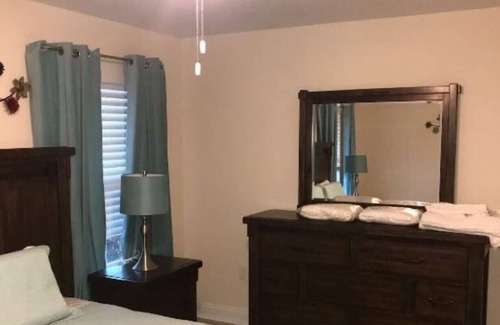 This is a beautiful brand new farm house, with full kitchen, garage and newly furnished bedrooms. TVs in every room, and one main spacious living room with huge TV. This is a peaceful quiet retreat, minutes away from main highways and many local favorite restaurants. Perfect