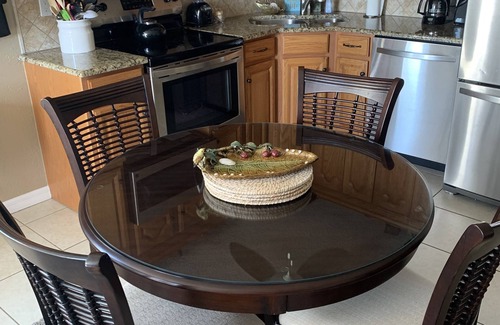 Enjoy sunsets from the balcony during the fall, winter and spring months or take a short walk to the beach and watch the colors change on the water as the sun dips below the horizon. Enjoy your coffee on the balcony as you watch the sunrise over the back bay. In the evening, enjoy the lights of the city. There are plenty of great views from the balcony. Upon entering the Tommy Bahama style condo, there is nothing else you'll need. Relax and enjoy the hassle free lifestyle of the Estero Beach and Tennis Club. The condo is located on the 8th floor in building A, low enough to enjoy the sound of the crashing waves from the Gulf of Mexico and high enough to enjoy fantastic views of the gulf and back bay. With the pool just an elevator button away and the beach just steps away, you'll watch the stress of everyday life disappear. Feel the warm breezes from the Gulf of Mexico while enjoying a drink on the balcony the moment you arrive. Take the trolley to the north end of the island to explore all the treasures of Fort Myers Beach. Anything you can think of has been arranged for you to have at your fingertips. Beach towels, beach chairs, tennis rackets, fishing poles, coffee maker (ground and K cup), a blender for your tropical drinks along with many other conveniences. The unit sleeps 2 adults, Relax and enjoy your stay, we're glad you are here to enjoy all that Estero Beach and Tennis Club has to offer. 7 night minimum stay.