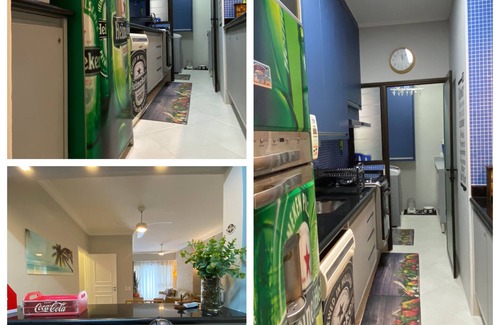 Finely decorated apartment on the beach of the cove, with 03 bedrooms (01 suite, 01 bedroom with toilet and 01 bedroom served by the social bathroom), modern and complete kitchen / laundry room, large living and dining room and beautiful balcony with panoramic beach view from the cove. Wall air conditioning in 3 bedrooms, ceiling fan in living room, 04 flat screen TVs, home theater, washing machine, tumble dryer, dishwasher and very well equipped kitchen provide a great stay. We accept small pet upon prior consultation. Sleeps up to 06 people including children.