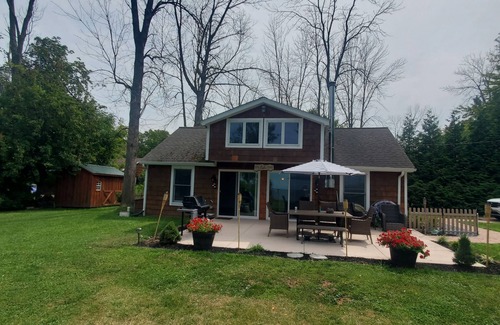 Completely renovated cottage on a private lot directly on Lake Ontario in Wilson, NY, with 80 feet of frontage and unobstructed views of the lake and the Toronto Skyline. A wide-open floor plan with brand new flooring, full kitchen, wood burning fireplace, furniture, and many other new amenities. The wide-open floor plan includes 2 sets of sliding glass doors for beautiful lake views year-round. There’s a king size bed in the lower bedroom and a Serta sleeper in the common space. In the loft, there are 3 beds (2-Queen and 1 Full), all with a beautiful view of the large yard and Lake Ontario. A great relaxing location just 25 minutes from Niagara Falls and 20 from the beautiful Village of Lewiston and all it has to offer. There are multiple State Parks within 30 minutes, the closest being 5 minutes away. A 10-minute walk to the kayak launch and beach on Lake Ontario. Access to the Canadian border at the Lewiston Queenston Bridge is 25 minutes for this beautiful cottage. **No water access**