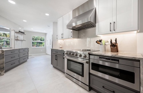 Stunning private estate in the heart of Naples! This fully custom home, with 4 large bedroom, 3 bath. a separate game/movie room and 3 bathrooms is ready to be your private escape. Completely remodeled and renovated, this house is a perfect example of magnificence. A lavish chef's kitchen a massive natural stone island includes 2 refrigerators and stainless appliances. The professional kitchen is connected to an enormous open floor plan that creates the perfect space to create memories with family and friends! Absolutely no expense has been spared to make this the perfect self-contained resort. The only thing better than the interior of this estate might be the amazing private property. With several thousand square feet of deck, an outdoor kitchen with chef's grill, an amazing pool and spa, and over an acre of grassy outdoor space surrounded by more than 100 manicured palm trees, the private outdoor space is beyond compare. Most important amazing retreat is less than a mile from the finest dining in Naples and less than 4 miles from 5th Avenue and the beautiful waters of the Gulf of Mexico.