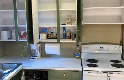 This three bedroom rustic Americana cabin sits on the banks of a nice year-round creek and has scenic views of the surrounding mountains for up to 6 occupants. The North Trailhead of Wolf Pen Gap ATV Trails is within 1 mile, so just unload your side-by-side and hit the trails running. All linens and toiletries are provided. There is a full size kitchen equipped with everything needed to prepare a meal. All you need to bring is your food and drinks. We also have two smaller units, RV spaces and a snack shack with snacks, ice and non-alcoholic drinks. We have a DVD player for use with the TV along with DirecTV service. We have included the cleaning fee with the nightly fee. There is a one-time $25 pet fee for small or service dogs, no large dogs. We also have RV sites for $35 per night. This lodging is available for hunters and fishermen even though hunting and fishing are not allowed on the campground.