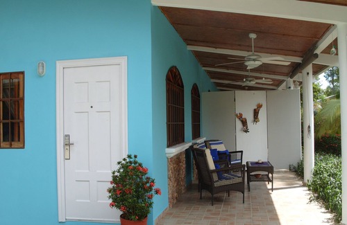 This stunning, newly renovated, fully furnished studio casita is 400 sq. feet with an open living/dining concept. The kitchen is fully equipped with new appliances and granite counter tops. With a queen size bed and couch/day bed offers plenty of space and storage. Guests can enjoy lounging by the outdoor pool, sitting on their private patio and barbecuing their evening meal. The grounds, a half acre, are lush green and filled with coconut, mango and papaya trees. The internet in each casita is hard wired to ensure a great experience.