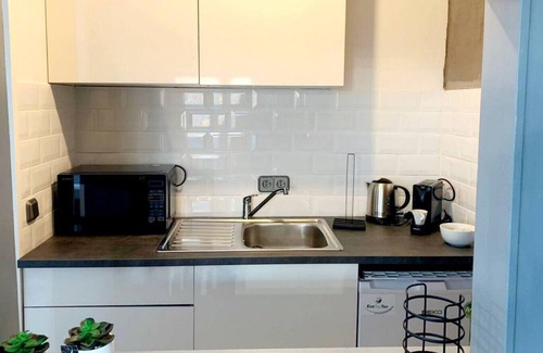 Mit einem guten Wein und einem leckeren Essen, dass du in der vollausgestatteten Küche angerichtet hast, kannst du die Wohnung zu deinem Ort des Genusses machen.