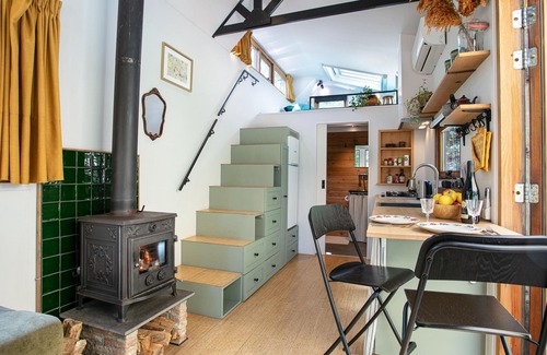 On a small holiday park in the Maashorst nature reserve, this beautiful tiny house is hidden among the trees. The tiny house has a sturdy interior and is equipped with all conveniences. After a day exploring the area, you can enjoy a relaxing evening in the wood-fired hot tub. Hidden behind the terrace, you can enjoy the peace and quiet here. On colder evenings, you can enjoy a good book and a glass of wine by the wood-burning stove