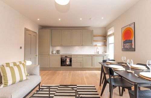 The stylish dining area seats 4 and makes the most of the light-filled room, with views to the street below.