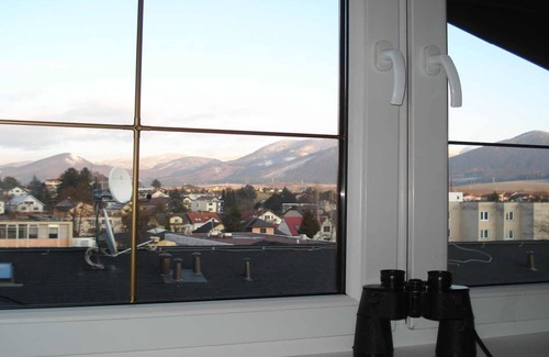 The apartment is located on the top floor (4th with elevator) in a new apartment complex on the square in the center of Rajecké Teplice offering spectacular views of the mountains facing south east, lit by the sun. Ideally the apartment is located a few steps from supermarkets, restaurants, pharmacies, post offices on the ground floor and especially opposite the Aphrodite spa complex (The apartment is with full equipment for cooking, fridge, microwave, kettle electric, electric stove with oven. The kitchen is open to a living room which can be separated by a curtain. In the living room there is a double sofa bed, satellite TV. The apartment has its own wifi internet coverage. Two other people can sleep in a room with two beds which can be combined or separated. The apartment includes a toilet and a bathroom with an automatic washing machine. Accommodation is suitable for a family of 4 members or two couples. Multilingual owners will advise;