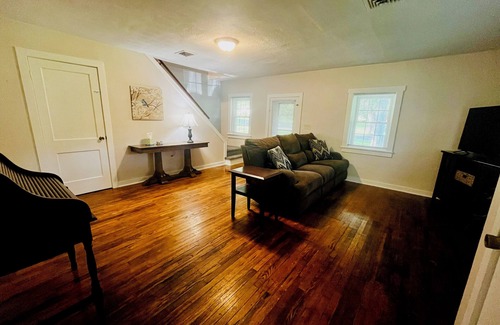Enjoy this spacious and serene space, just 15 min from downtown Dayton, OH. Perfect for business travelers, couples, or solo adventurers, you'll have the entire unit in this duplex to yourself, along with a generous fenced-in yard. This unique home was originally an 1800s log cabin and features exposed original wood beams, a fully equipped kitchen, spacious living area with smart TV, high-speed Wi-Fi, comfortable bedroom loft with queen-sized bed and office nook, and a clean, updated bathroom.