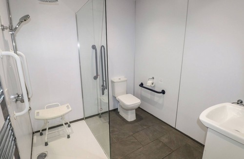 Beech, a single-storey home, consists of a studio-style living space featuring a double bed, a single bed, dining area, sitting area. There is also a wet room with walk-in shower, handheld shower, basin, and WC. Includes electric central heating, a 24" Smart TV, WiFi, and all fuel, power, bed linen, and towels in rent. Off-road parking is available, along with a non-enclosed front garden with gravelled area and picnic bench, plus secure bike storage. Please note that this is a pet-free and smoke-free home. Shop within 0.5 miles, pub 1.9 miles. Beech is a holiday home made accessible for everyone.