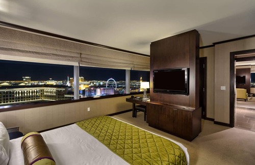 - This is a corner suite surrounded by glass! Full length windows on 2 sides, all with incredible views overlooking the Bellagio Fountains, the Eiffel Tower of Paris Resort, The High Roller Ferris Wheel and all the rest of the North Strip. Catch both sunrises and sunsets over the mountains beyond! Amazing by day, jaw dropping at night!!