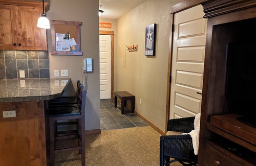 Ground level at Silver Mountain Resort! Discover your perfect getaway at our charming first-floor studio. Designed for comfort and relaxation, this coveted unit boasts an open-concept layout with a king-sized bed, kitchenette, and private patio. The private patio is one of the best at Silver! Spacious and open, the ground level outdoor space offers ease and accessibility that few other units have! Plus, the gondola entrance, water park, and restaurants are just steps away!