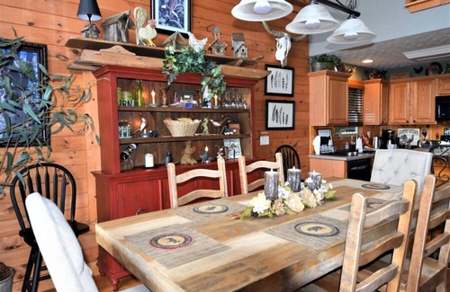 Bald Eagle Lodge is an Amazing "upscale" large 5 bedroom 3 level cabin with Hot Tub, that can sleep up to 15 people (10 comfortably), 10 beds. Pets Welcomed