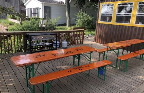 Welcome to Betty’s Bluff on beautiful Lake Huron! She is perched up high with 180 degree views of the lake with a large outdoor patio to dine and spend lazy days sun bathing. Take stairs down to swim, kayak and float on a raft. Head to the front yard to have a campfire or have an afternoon bags tournament.