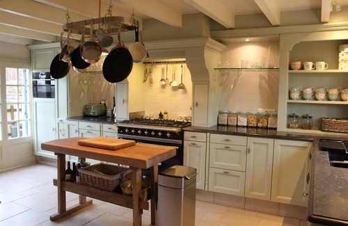 Full of French charm and character, La Chouette offers elegant light and bright accommodation, but keeping a warm & homely feel, offering 4 individual bedrooms (3 x King Size Beds, 1 x Twin 3ft Beds), an en-suite bathroom with bath and separate shower to the King size bedroom downstairs, 3 further bedrooms upstairs, and another shower room. Including the fully equipped shower room near the pool, there are 3 bath/shower rooms in total. The stylish, well equipped kitchen with stone work surfaces is lovely to work in, with lots of recipe books to ponder over, and larder items available for your use, without having to buy them from the supermarket and only using them once! It has doors to the outside terrace, and a rather posh Lacanche range cooker. The large living/dining room has a log burner if needed out of season, and French doors onto the terrace. Downstairs you will also find a utility room with washer and dryer, and at the other side of the hall a separate WC, with bidet and wash hand basin. The TV has English channels.