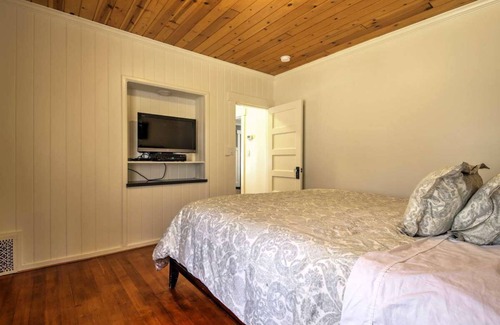 The Big Bear Farmhouse is surrounded by over 200 towering pine and cypress trees on a large, 1-acre private lot. The beautifully restored 1920’s Craftsman farmhouse maintains its charm and history with the original hardwood floors, woodwork and casement windows, yet features luxurious upgrades and modern appliances. This home is ideally situated in the heart of Big Bear Lake, just minutes to all-season recreation and entertainment, including Big Bear Lake Pine Knot Marina (.8 miles), 2 world class ski resorts (Snow Summit 1.3 miles; Bear Mountain 3 miles), the Village Shops & Restaurants (.8 miles), and so much more.