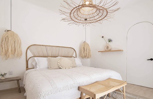 As you enter, you're greeted by an open courtyard patio with seating, a fabulous hammock, and the romantic ambiance of the market lights. It instantly delivers a feeling of being on holiday.