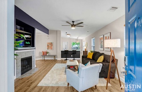 Escape to this relaxing house for an extended stay! After exploring all that Austin has to offer this home welcomes you in with its two cozy bedrooms, full kitchen, and peaceful living space. Whether you snuggle up for movies, whip up a delicious homemade meal, or work from home in the quiet office space, this home has everything you need!
