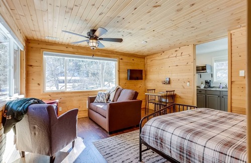 Walk into this cabin and you immediately feel the coziness with a gas fireplace! We have a soft Queen size bed to sleep in after a day of adventuring. Enjoy sunlight all day long with views of the river in your own private cabin! The mule deer love to walk past in the mornings and the hummingbirds are everywhere!