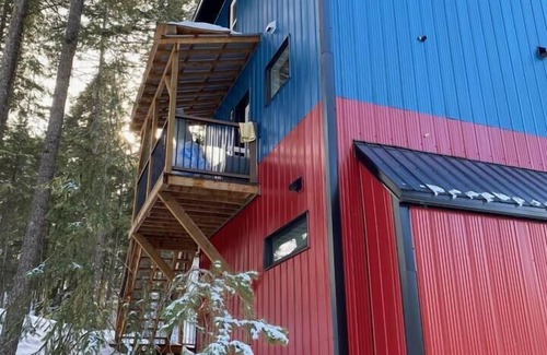 Welcome to the Birch House! Located directly above Golden our new, unique, custom built studio suite boasts magnificent views of the Columbia Valley and Kicking Horse Ski Resort. We’re located 5 minutes from town and a 5-minute walk to the Golden Skybridge. Explore our hiking trails and large property. This light filled open plan bachelor suite is surrounded by trees and 360 degree views. Whip up a meal or just make coffee in the fully equipped kitchen. A queen sized bed, and your own private deck make this an ideal getaway space for couples. Private entrance up 5 stairs. Key code is provided before check in. Parking available for 2 vehicles. The Studio is located on the bottom floor of a duplex. Please understand that this is a shared building. While we've done extra insulation and soundproofing to dampen noise between suites, we still ask that you be respectful of the other guests. We live on the property and are happy to help if need be. Quiet and rural location only a 5-minute drive to town, walk across road to the skybridge via our trail system!
