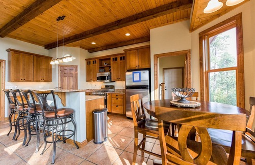 After all your daily adventures, you will enjoy coming home to your 4,300 sq. ft. home with a floor-to-ceiling rock fireplace. Large enough for up to 17 guests, but plenty of room for each of you to spread out while enjoying some foosball, large flat-screen TVs with a Wii entertainment system and satellite TV, as well a kids play area. The gourmet kitchen with island has plenty of room for everyone in your group along with a nice walk out to the deck area where you can listen to the breeze and view wildlife right from your home! The master bedroom has a king bed with a jacuzzi tub and a TV on the main level as well!