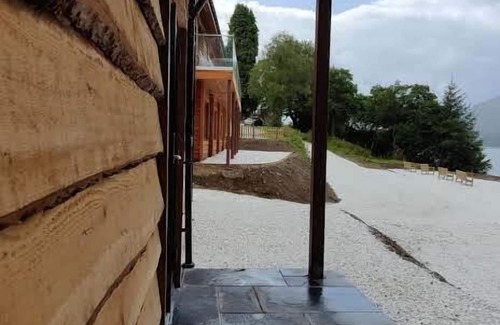 This cabin is decorated in a classic highland rural country home style. Heather & Thistle are traditional Highland motifs and are reflected in the interior's furnishings. The wooden wall panelling, floors and reclaimed rough wood beams are characteristic of a typical Highland home. There are three spacious bedrooms with super king beds / zip & link beds and en-suite bathrooms with showers. All rooms connect to a warm inviting space with a fully equipped open kitchen, dining area and a comfortable living area with a sofa-cum-bed and an electric fireplace. Spa and restaurant facilities are available at the adjacent Hotel. Beautiful views can be enjoyed from the patio. Guests can also access the private pebble beach. This cabin is pet friendly.