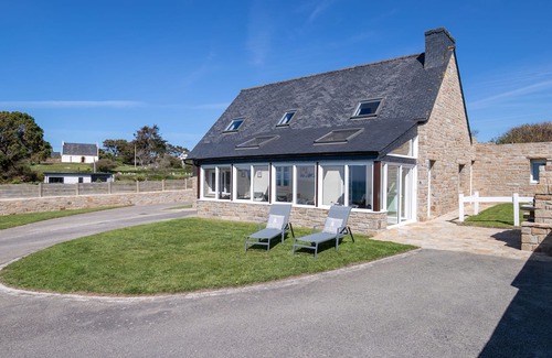 Cosy single-family house "Blaues Meer". 4.5 km from the centre of Plouarzel, 3.5 km from the centre of Lampaul-Plouarzel, 25 km from the centre of Brest, in a quiet position in the residential district, from the sea, 200 m from the beach. Private: property 860 m2 (fenced), garden with lawn and wildlife garden, courtyard, parking (for 3 cars) on the premises. Shop 3.2 km, supermarket 5.5 km, restaurant 2 km, bakery 3 km, bus stop "Plouarzel Centre" 4.6 km, sandy beach "Pors Tévigné" 200 m, indoor swimming pool 13 km. Sports harbour 1.6 km, golf course (18 hole) 7 km, surf school 10 km, sailing school 18 km, walking paths from the house 50 m. Nearby attractions: Le Conquet, bateau pour les Îles 13 km, Plougonvelin, Fort Berthaume 15 km, Aber Ildut 6 km, Portsall 21 km, Lannilis 30 km, Brest, Océanopolis 30 km. Hiking paths: GR34, sentier des douanièrs 150 m. The owner does not accept any youth groups.