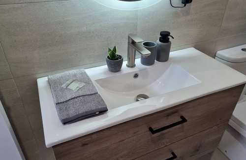 Our modern kitchen has full fridge and freezer, microwave and full electric oven.