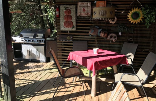 One of the highlights of our cabin is the full deck, which offers breathtaking views of the Toccoa River. Take in the tranquil surroundings as you grill up a feast on our top-of-the-line cooking grill, creating lasting memories with friends and family.