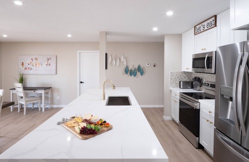 Kitchen: Prepare to be captivated by the sleek and fully equipped open kitchen at Blue Tides Getaway. Begin your mornings by brewing a fresh cup of coffee, embracing the aroma that fills the air. The kitchen boasts top-of-the-line appliances and is stocked with all your basic cooking essentials, ensuring a seamless culinary experience. Extra amenities such as an additional refrigerator and an air fryer further enhance your convenience. Whether you're whipping up a gourmet meal or simply enjoying a quick snack, the kitchen is your haven for culinary delights.